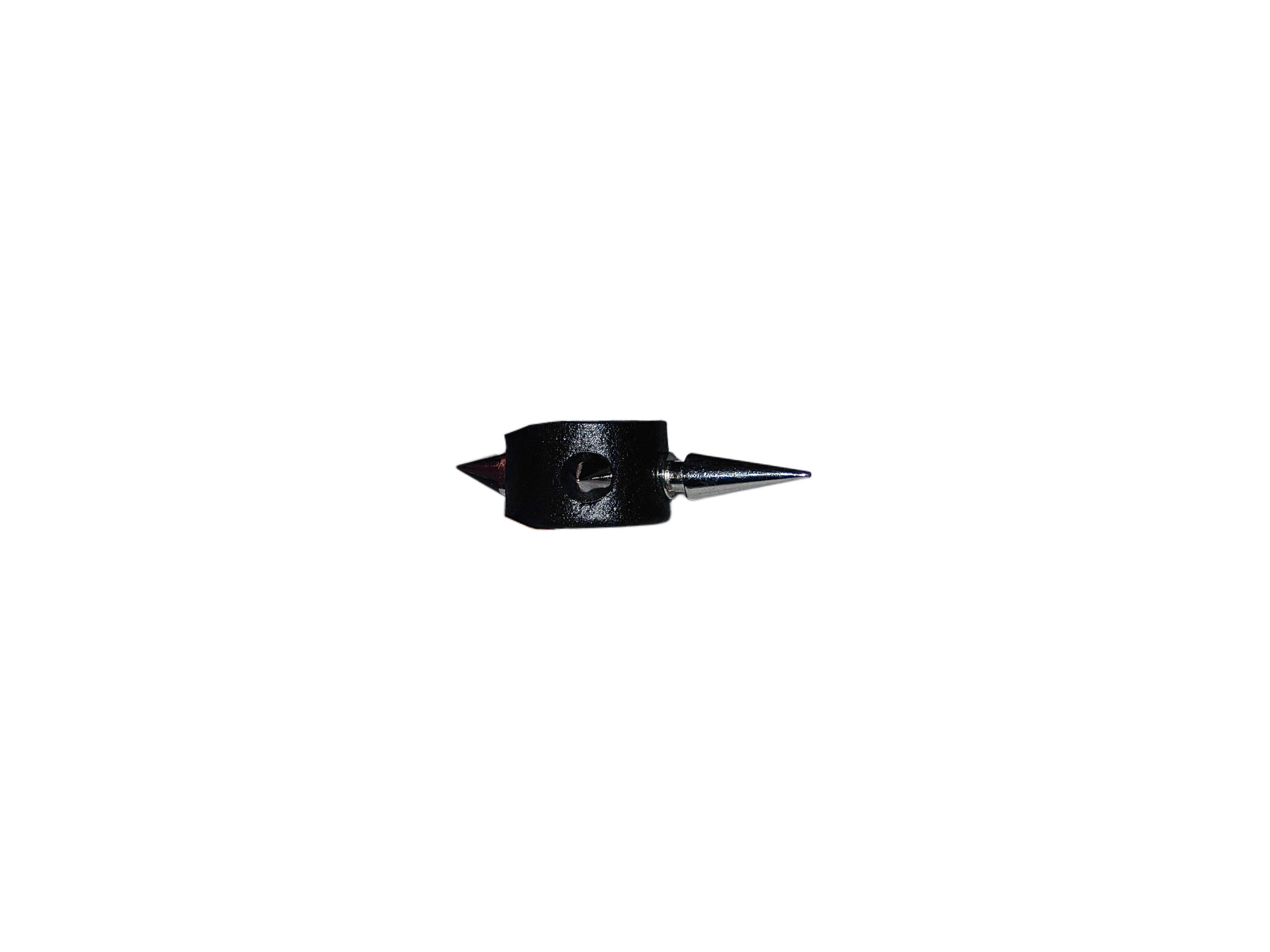 Handcrafted from recycled leather, featuring three metallic spikes with a longer central spike.